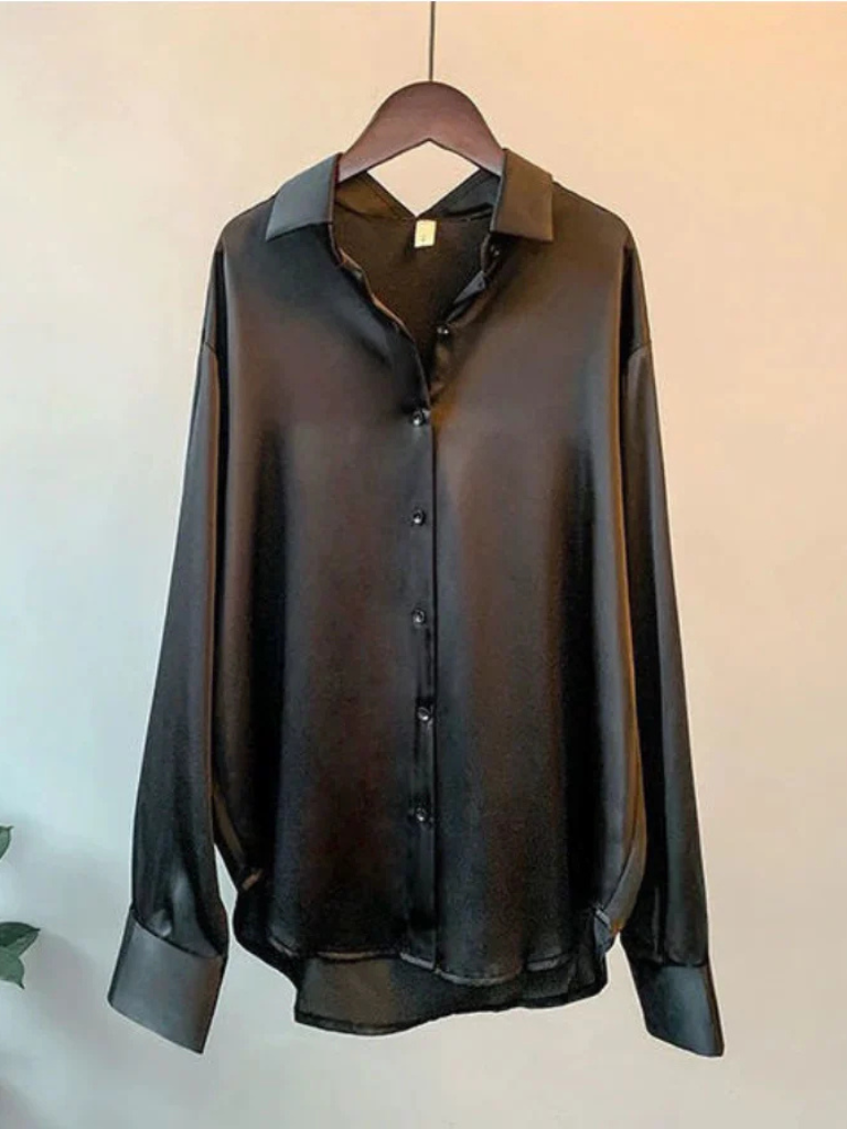 Effortless elegance for every day. The Eastmere Satin Shirt drapes beautifully with its relaxed fit and soft sheen, making it a timeless staple in your capsule wardrobe. Perfect for work, weekend brunch, or an evening out, it offers versatile styling options — tuck it into tailored pants or pair it with jeans for a laid-back luxe look. Available in Black, White, Olive Green, and Light Gold.